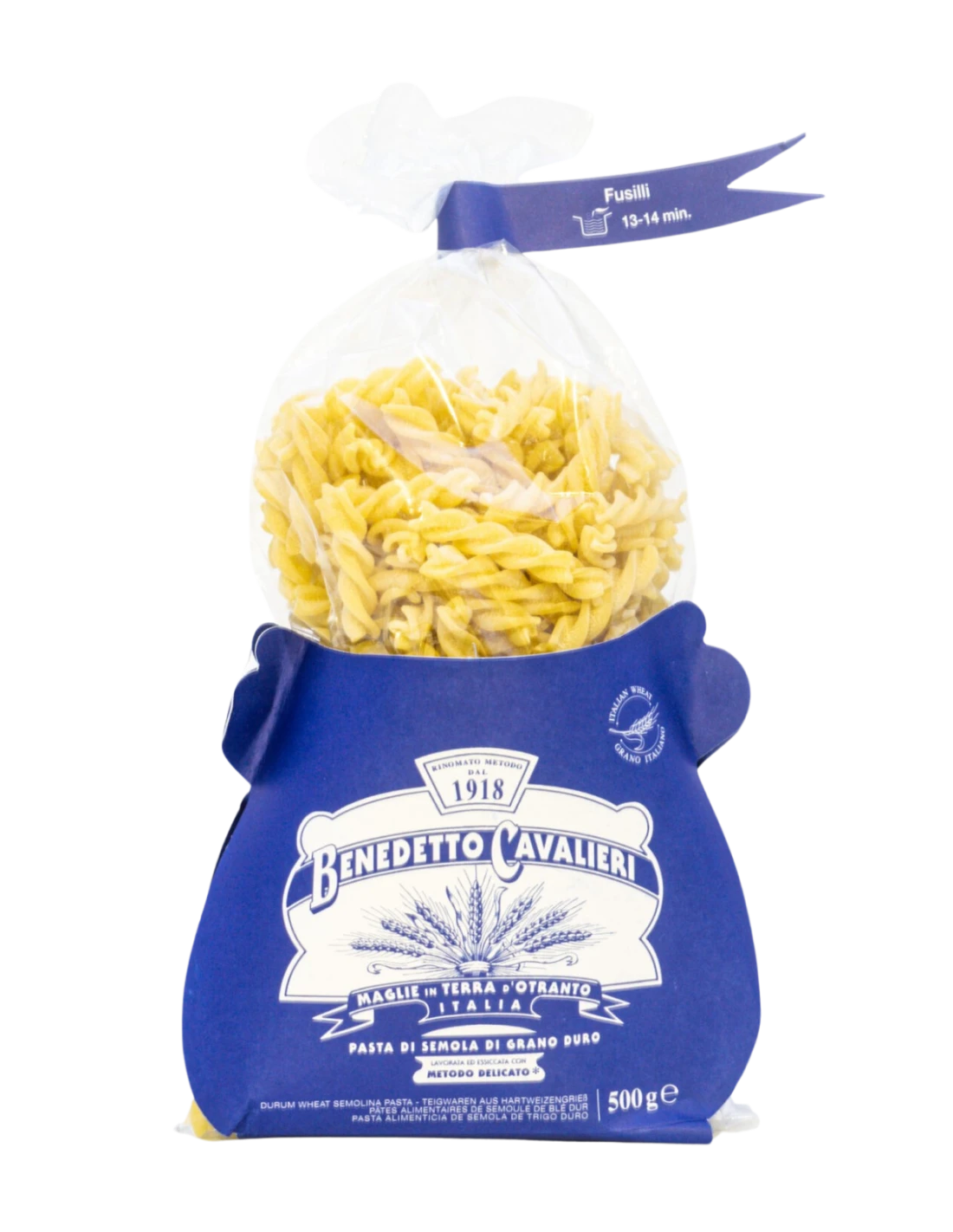 La Capelli Angelo Benedetto Cavalieri, pasta artigianale pugliese di semola di grano duro 100% italiano, trafilata al bronzo e a lenta essiccazione.