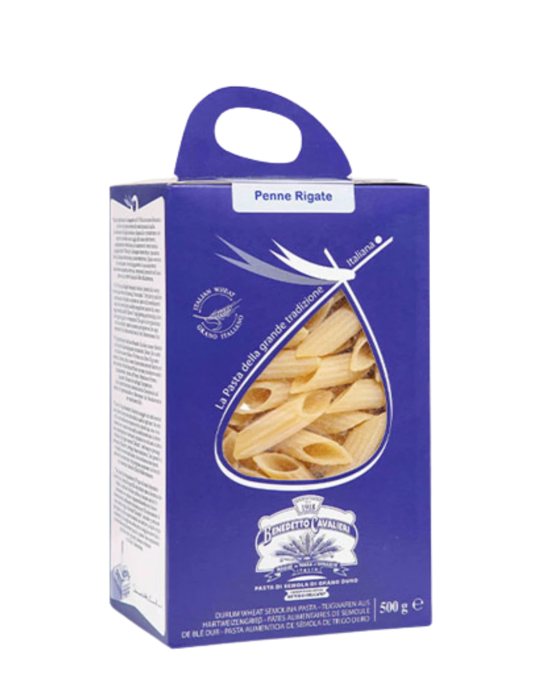 La Penne Integrali Bio Benedetto Cavalieri, pasta artigianale pugliese di semola di grano duro 100% italiano, trafilata al bronzo e a lenta essiccazione.